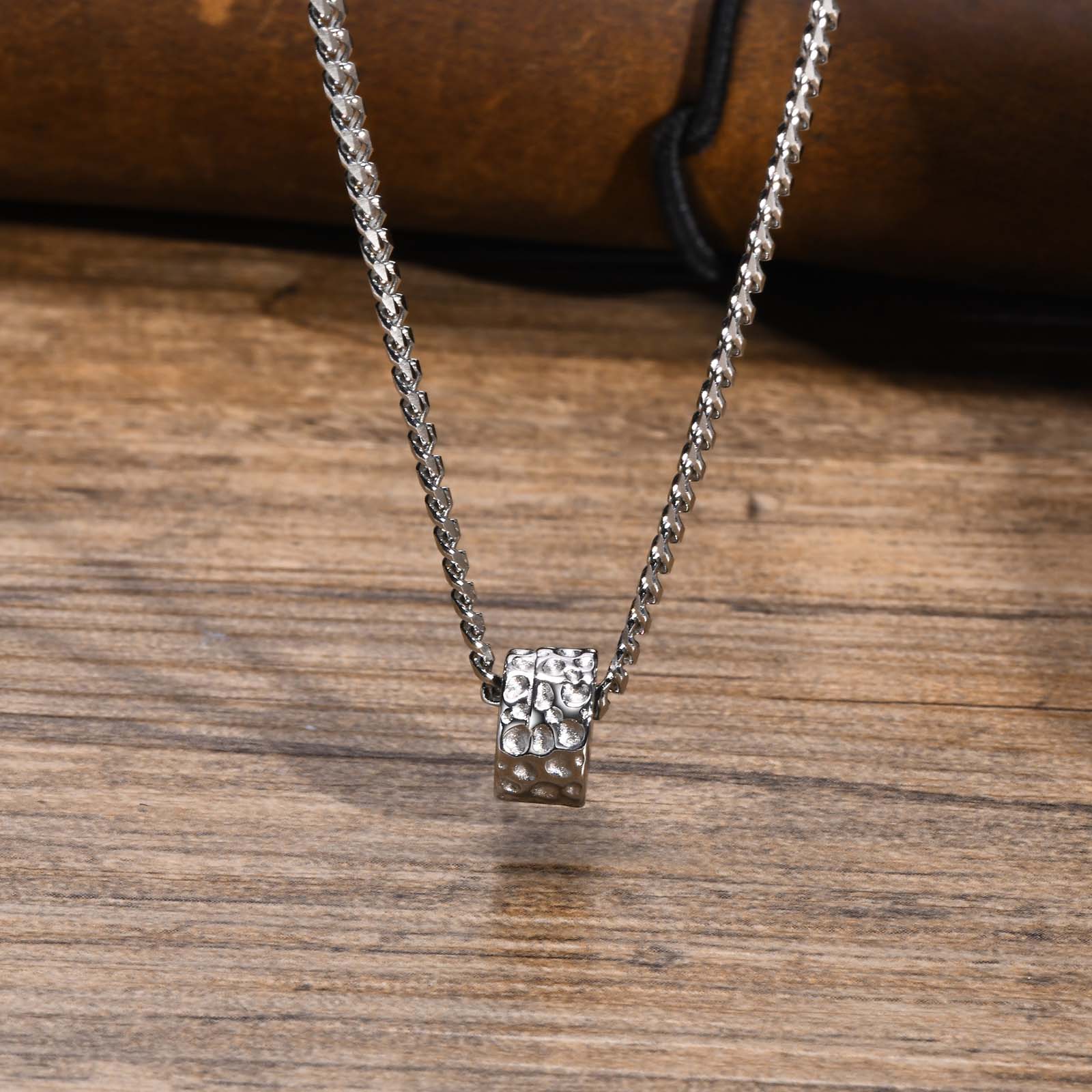 The necklace itself matched the description perfectly. It's a 60cm beaded chain with smooth, comfortable beads. It's surprisingly lightweight, so he hardly notices he's wearing it. The stainless steel feels durable and doesn't seem cheap at all. He's worn it every day since I gave it to him, even in the shower, and it still looks as good as new! This necklace is a fantastic addition and pairs beautifully with an engagement ring with wedding band.